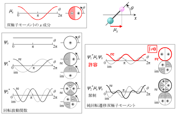 純回転遷移の選択則は遷移双極子モーメントが 0 でない回転量子数の組み合わせ