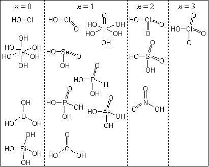 | 酸: | H+, Li+, Na+, K+, Be2+, Mg2+, Ca2+, Cr2+, Cr3+, Al3+, SO3, BF3 |
