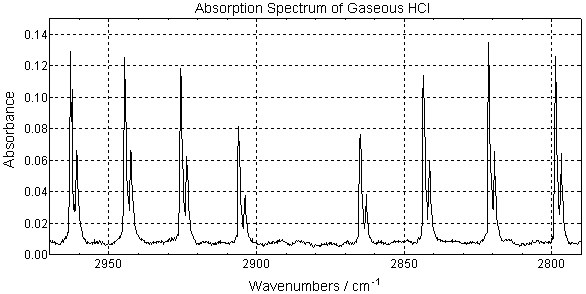 Cl の天然存在比は約 3:1 である。 HCl の赤外吸収には、弱いピークが約 2 cm